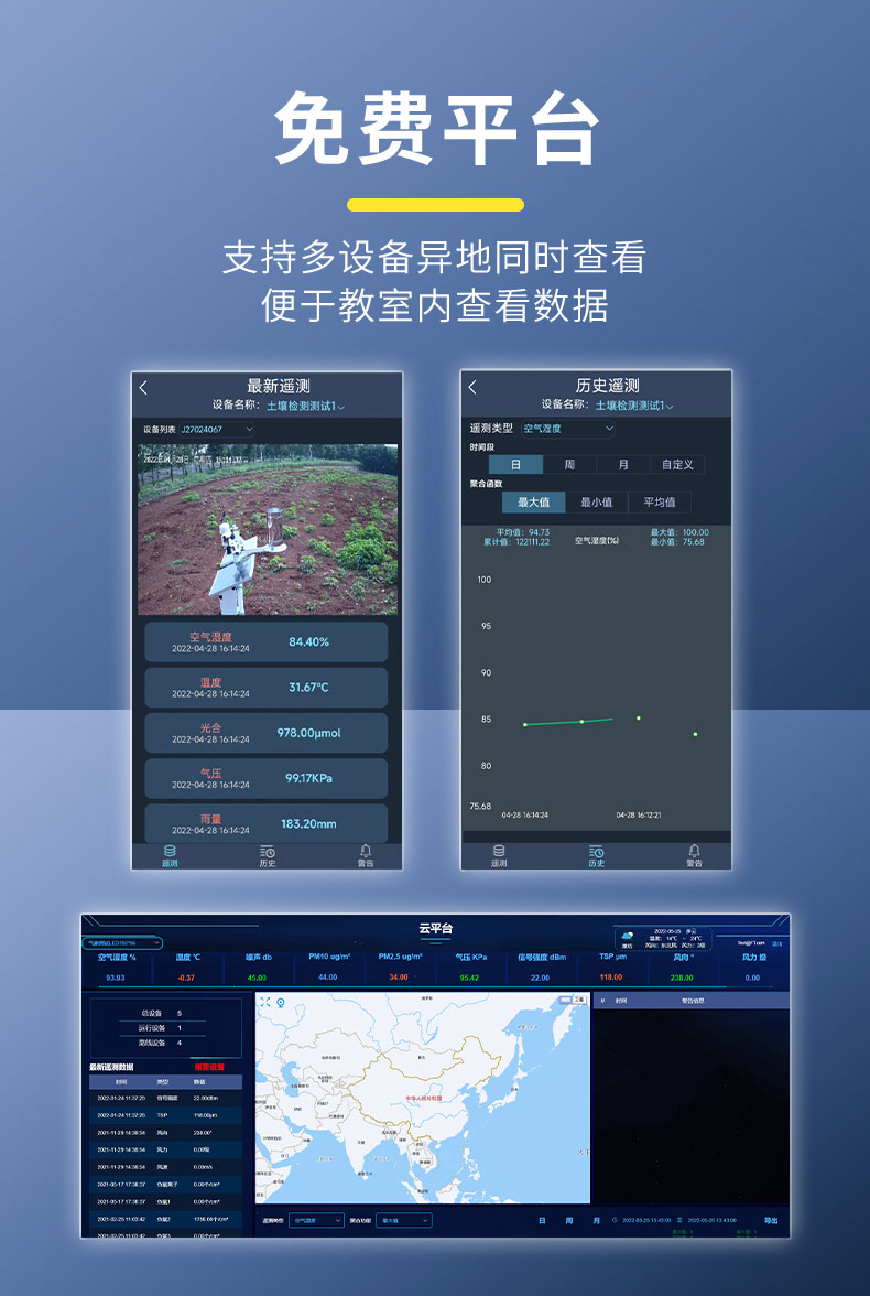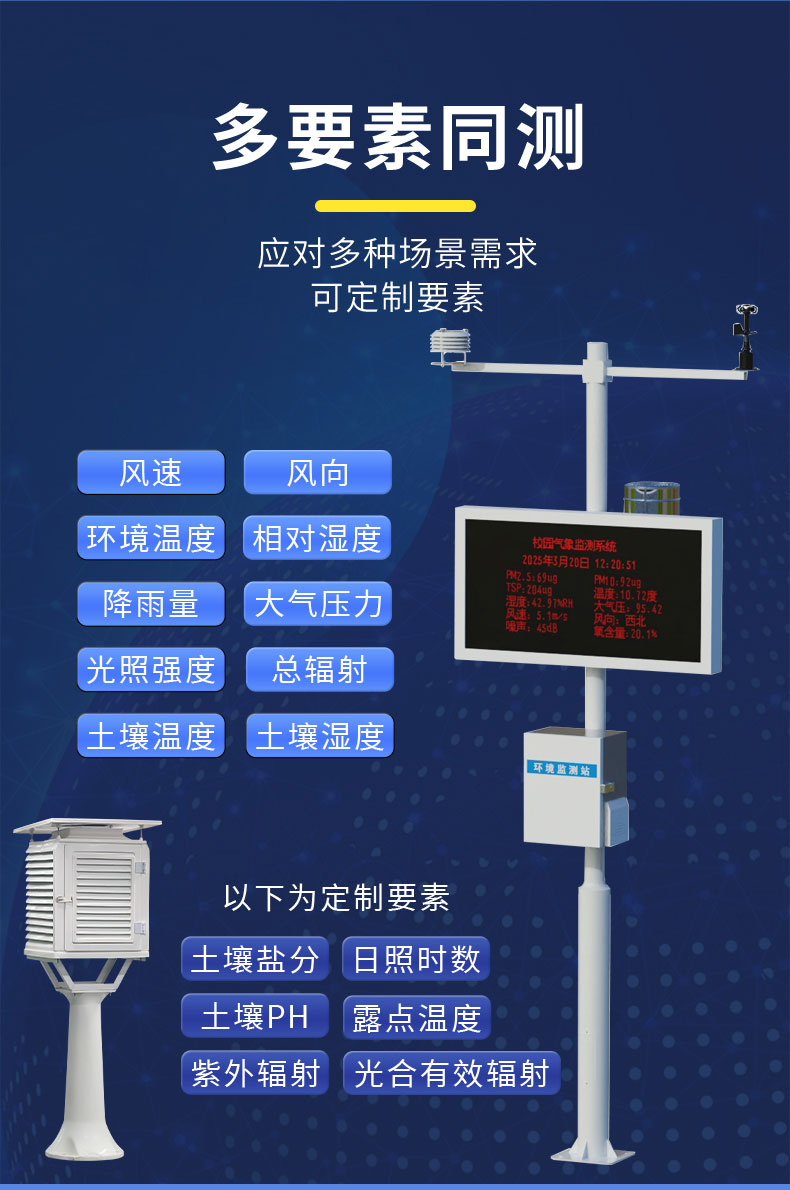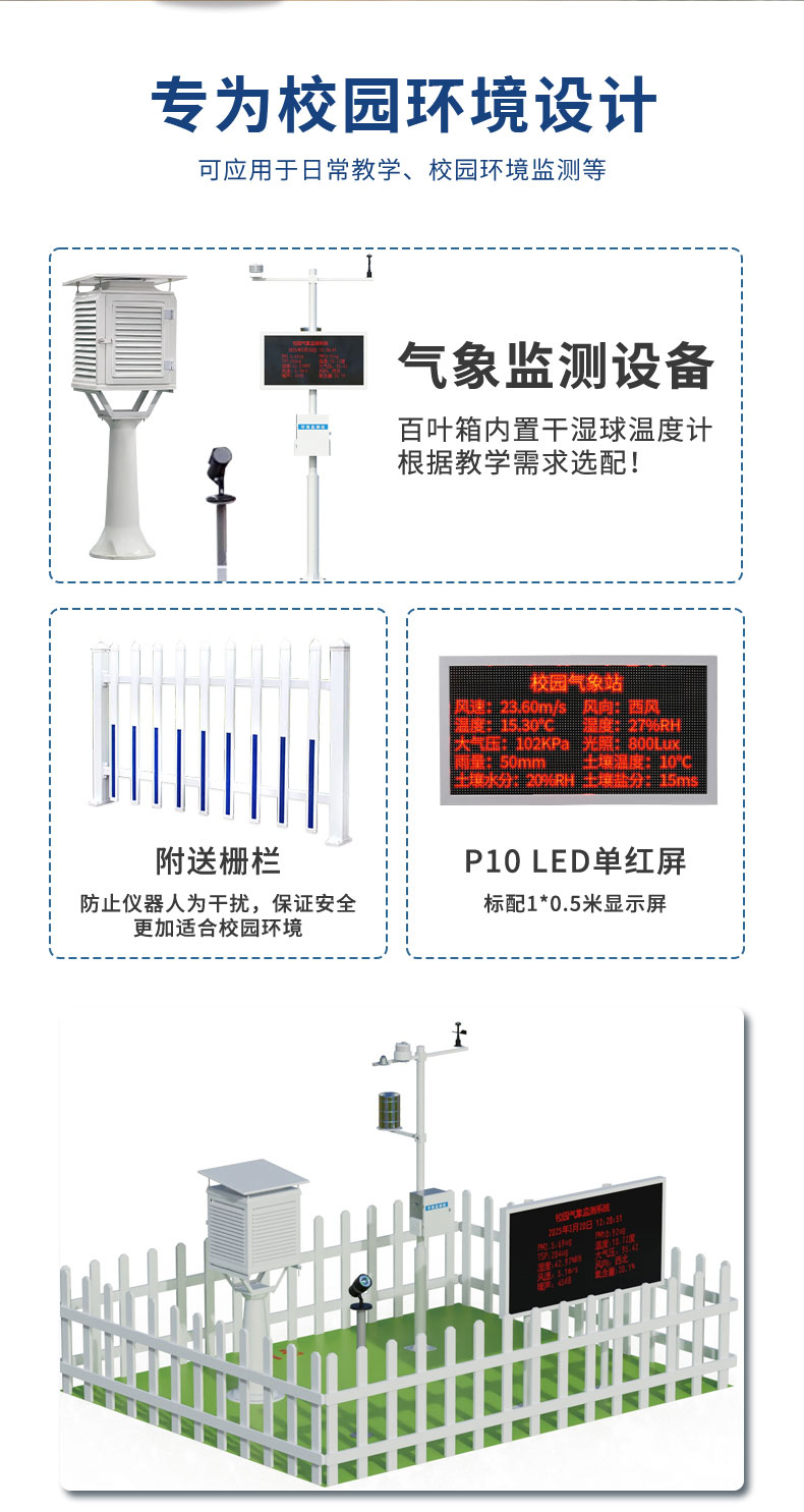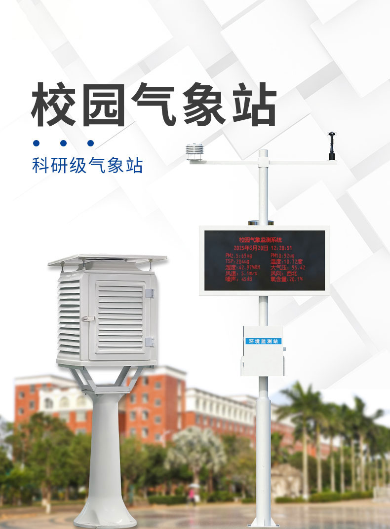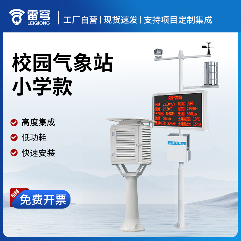 XQ2小学校园气象站是一款高度集成、低功耗、可快速安装、便于教学使用的科研级气象站。