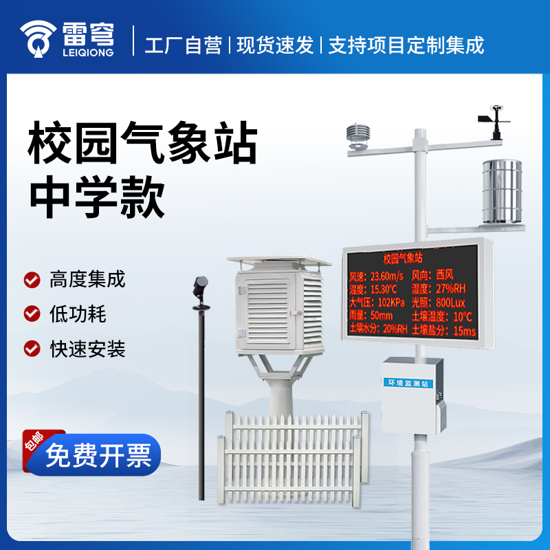 XQ3中学校园气象站是一款高度集成、低功耗、可快速安装、便于教学使用的科研级气象站。