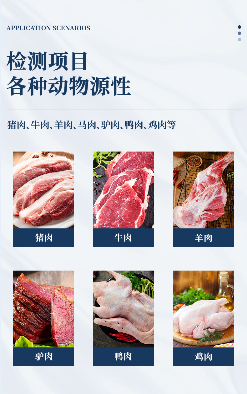 【产品简介】肉类鉴别仪具有使用简单,操作简便和易于控制的特点。可针对肉源性鉴定(鸡,鸭,鹅,牛,羊,猪,马,驴等)检测。一、肉类鉴别仪仪器特点1.体积小,重量轻,易于携带。轻松满足外出实验的需···