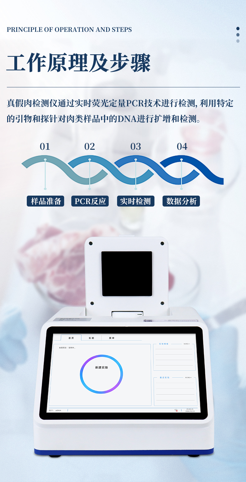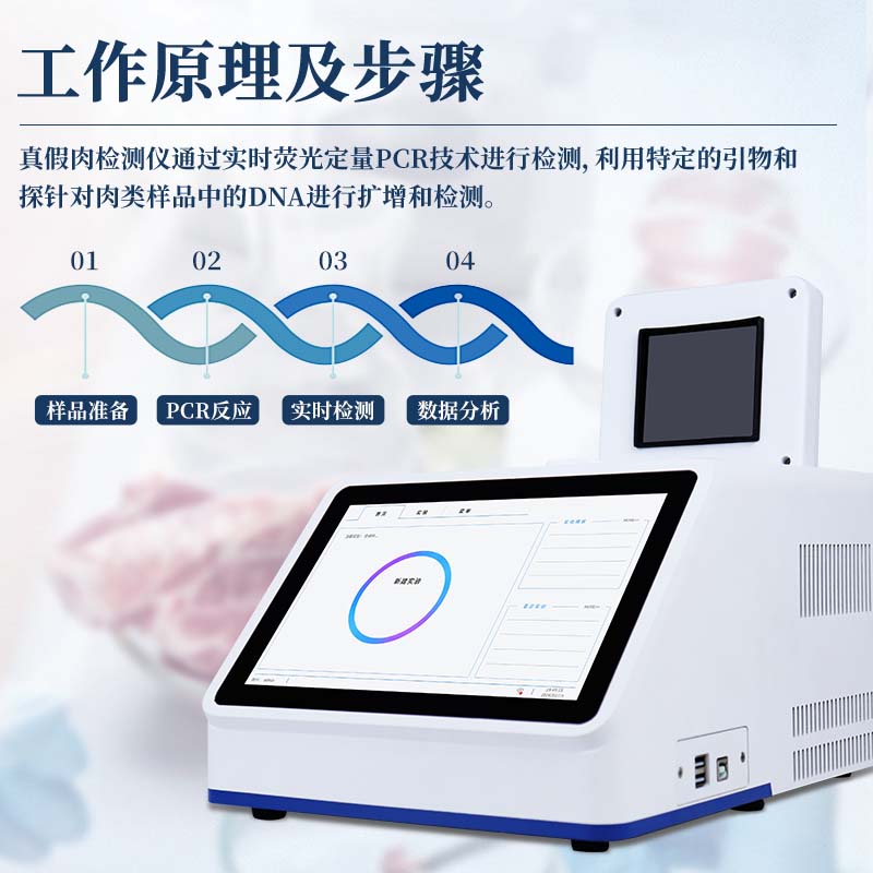 真假肉检测仪通过实时荧光定量pcr技术进行检测,利用特定的引物和探针对肉类样品中的DNA进行扩增和检测。