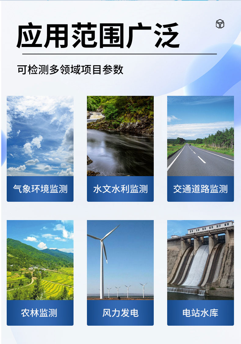 广泛应用于气象环境监测、水文水利综合监测站、交通道路监测、农林、风力发电等有关部门用来遥测降水量、降水强度、降水起止时间。用于防洪、供水调度、电站水库水情管理为目的水文自动测报系统、自动野外测报站等。