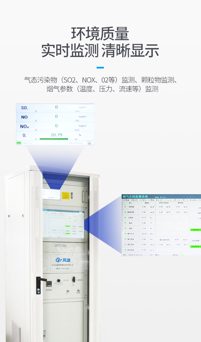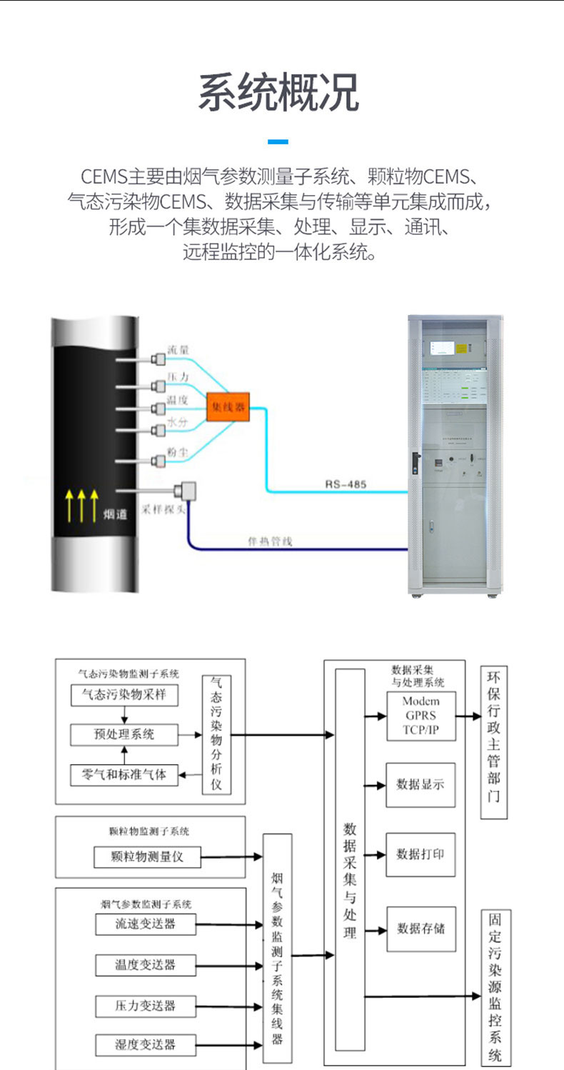 超低cems烟气监测系统由气态污染物(SO2、NOX、02等)监测、颗粒物监测、烟气参数(温度、压力、流速等)监测及数据采集与处理4个必选子系统组成。