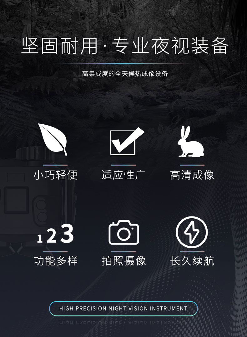 4、产品独特的图像处理算法、去噪效果明显,独特的数字增强算法和画中画放大和图像自动拉伸算法,使用效果超过市面上普通夜视产品。