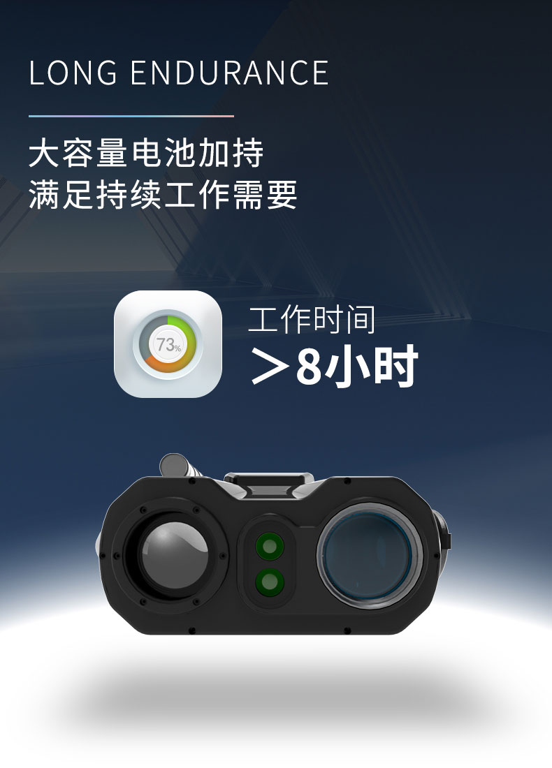 5.夜视距离远:常规夜视仪体积大夜视距离近而且夜视效果差或者在有外界光照情况下方可使用,不能满足全天候远距离侦查取证的要求;而本设备采用肉眼不可见激光补光,体积小,夜视距离可达500米以上,白天距离达2000米以上,满足超便携全天候远距离侦查取证的要求。