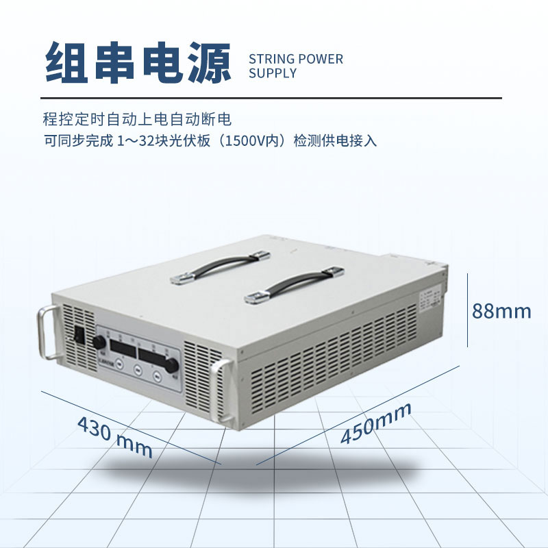 EL测试电源为我司针对光伏电站组串反向上电特性所研发,通过将交流电转换为直流电输入电池板激发电致发光,从而进行EL的内部缺陷测试。