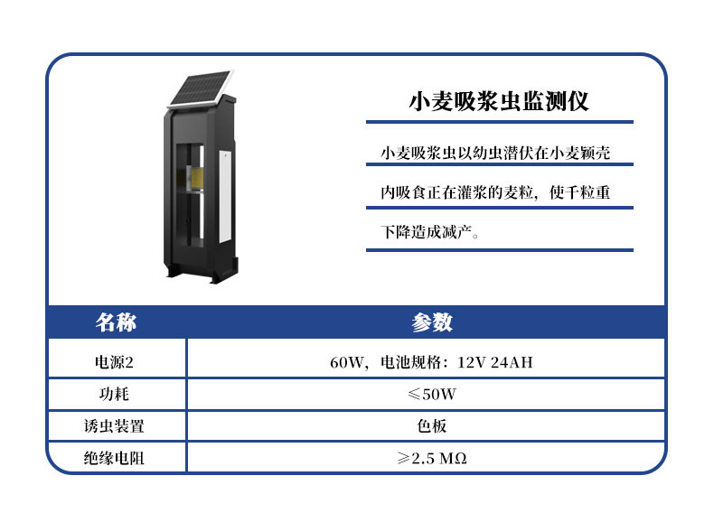 【产品简介】一、小麦蚜虫测报仪产品描述蚜虫可为害小麦叶片、茎秆、穗部,影响小麦光合作用及营养吸收、传导,使千粒重下降造成减产。小麦蚜虫测报仪根据蚜虫对特定颜色敏感的原理研制而成,设备集自动调节···