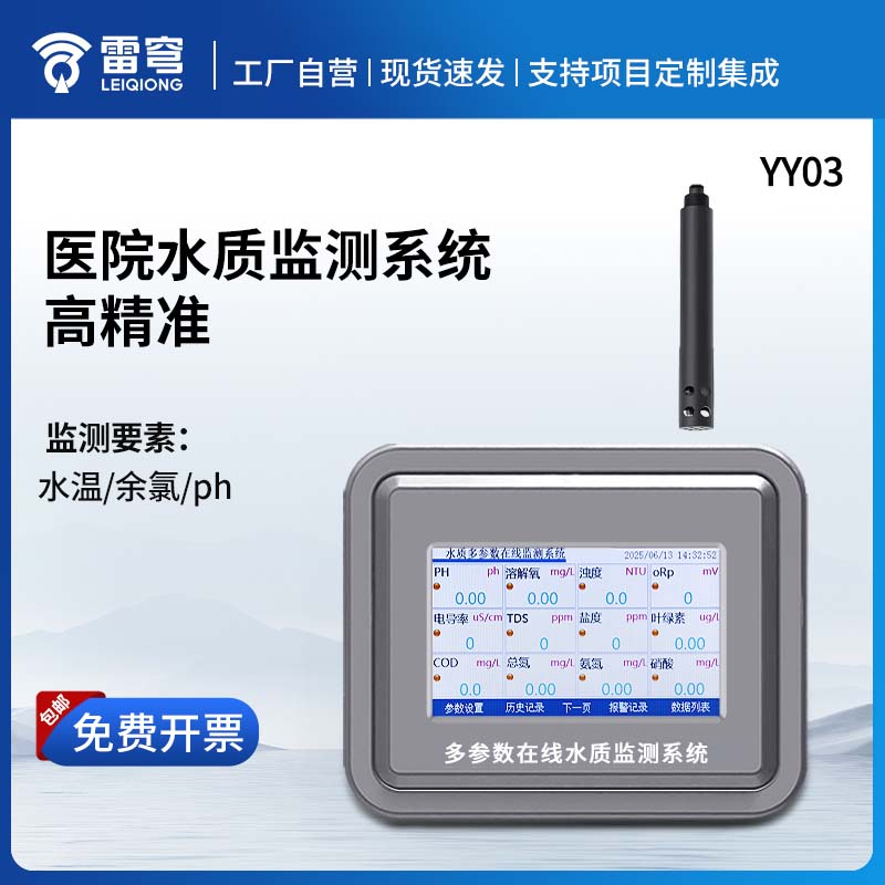 【产品简介】一、医院水质监测系统产品介绍YY03在线医院水质监测系统是一种能够在线监测水温、余氯、ph的仪器。它集成了对应的传感器和测量模块通讯存储,能够快速、准确地记录水体中的关键参数。同时···
