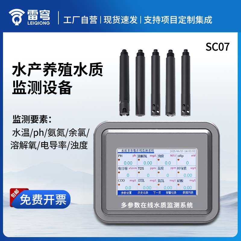 SC07在线水产养殖水质监测设备是一种能够在线监测水温、ph、氨氮、余氯、溶解氧、电导率、浊度的仪器。它集成了对应传感器和测量模块通讯存储,能够快速、准确地记录水体中的关键参数。同时,仪器支持扩展水质多参数传感器,包括但不限于pH值、溶解氧(DO)、电导率、浊度、温度、氨氮等,可以根据不同的需求和应用进行组合和配置,记录并存储历史监测数据、报警历史记录,支持历史数据导出.xlsx。RS485接口支持MODBUS-RTU通讯协议方便用户自由通讯与PLC、DCS,组态软件,DTU等设备连接传输数据。