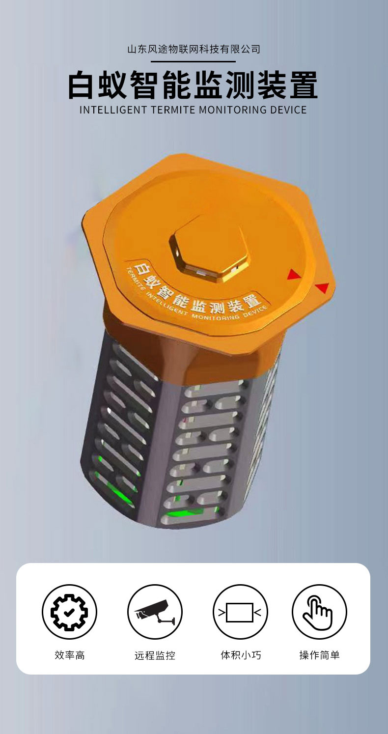 【产品简介】水利地埋型BY2白蚁监测设备原理采用白蚁喜欢吃的食物做诱饵,吸引白蚁取食,取食过程中触动报警装置。报警装置发出信号,通过物联网传输到监控系统,经过数据处理,监测结果呈现给用户。用户···