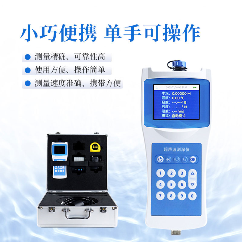 多功能测深仪是测量水库、湖泊、江河、浅海等水体的便携式测深仪,测深时将超声波换能器置于水面下一定位置,利用超声波在水中的固定声速VC和超声波发射到接收的时间T,仪器自动换算出水深H。本品是我司积累多年生产经验,吸取了多种同类产品优点,而开发的一款方便适用的手持式超声波测距仪表。超声波收发转换电路采用专用大规模集成电路,元件贴片率99%,并以液晶显示测深结果,保证了产品的长期可靠性,同时将其功耗降到了极低。具有测量精确、功耗低、可靠性高、使用方便、操作简单、测量速度准确、携带方便等优点。仪器可在静水中测深,也可在具有一定速度的水中测深;水流速度≤5m/秒,是水文测验、水电厂库区、湖泊、河道勘测和环境水域监测的理想水深测量仪器。