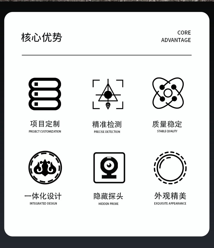 1、顶盖隐藏式超声波探头,避免雨雪堆积的干扰,避免自然风遮挡