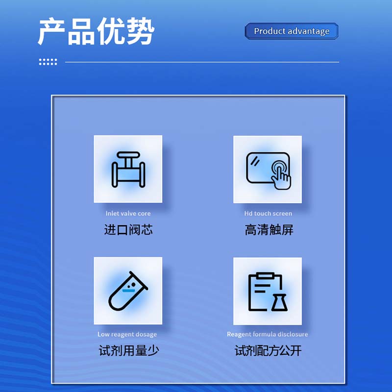 试剂消耗:3个月/500ml显示输出:配置有10.1寸彩色液晶触摸屏