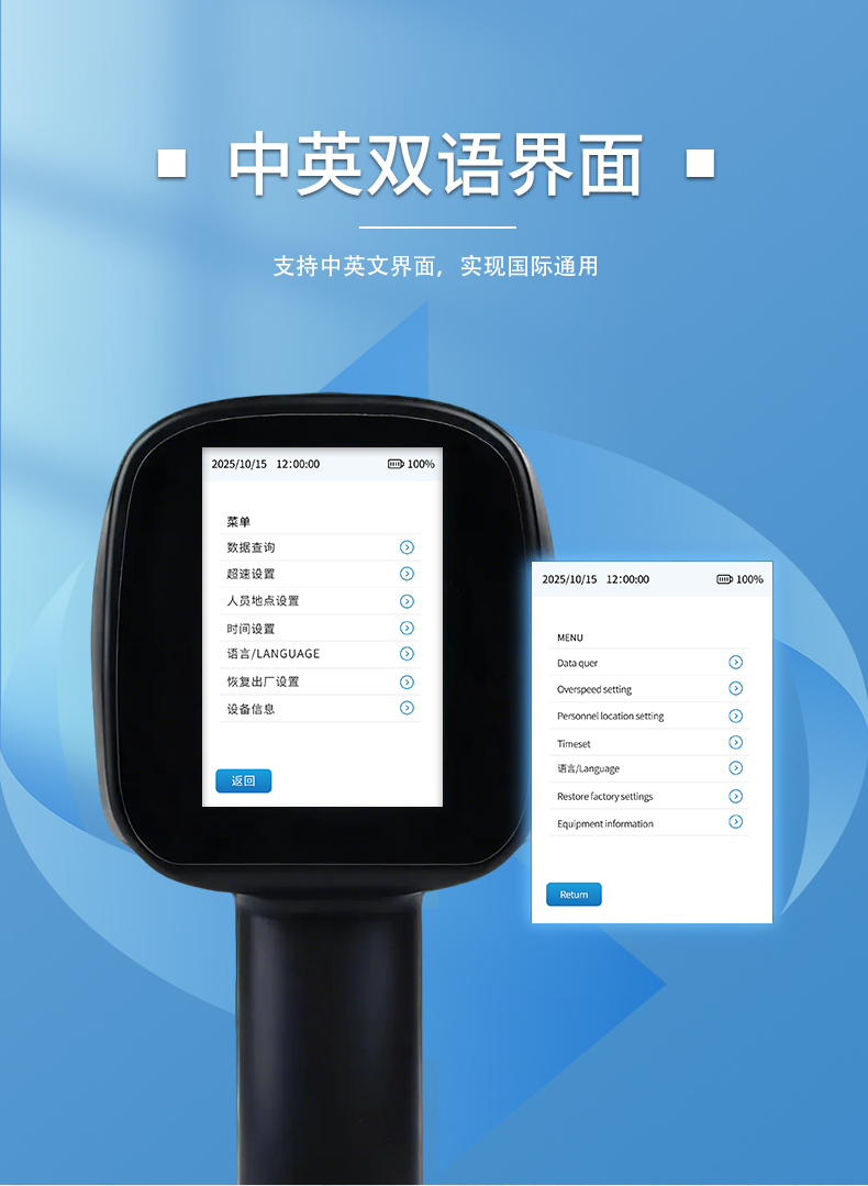 手持式雷达测速仪依据多普勒效应,通过向车辆方发出无线电波,当电波的能量撞击车辆时,波的能量一小部分返回雷达设置天线;根据返回信号频率不同,测定车辆速度,支持车载动态测速。