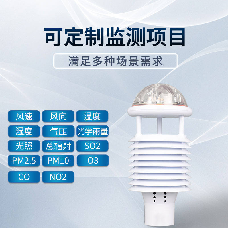 3.风速、风向、温度、湿度、气压、光学雨量、pm2.5、pm10、CO、NO2、SO2、O3十二要素一体式传感器☆