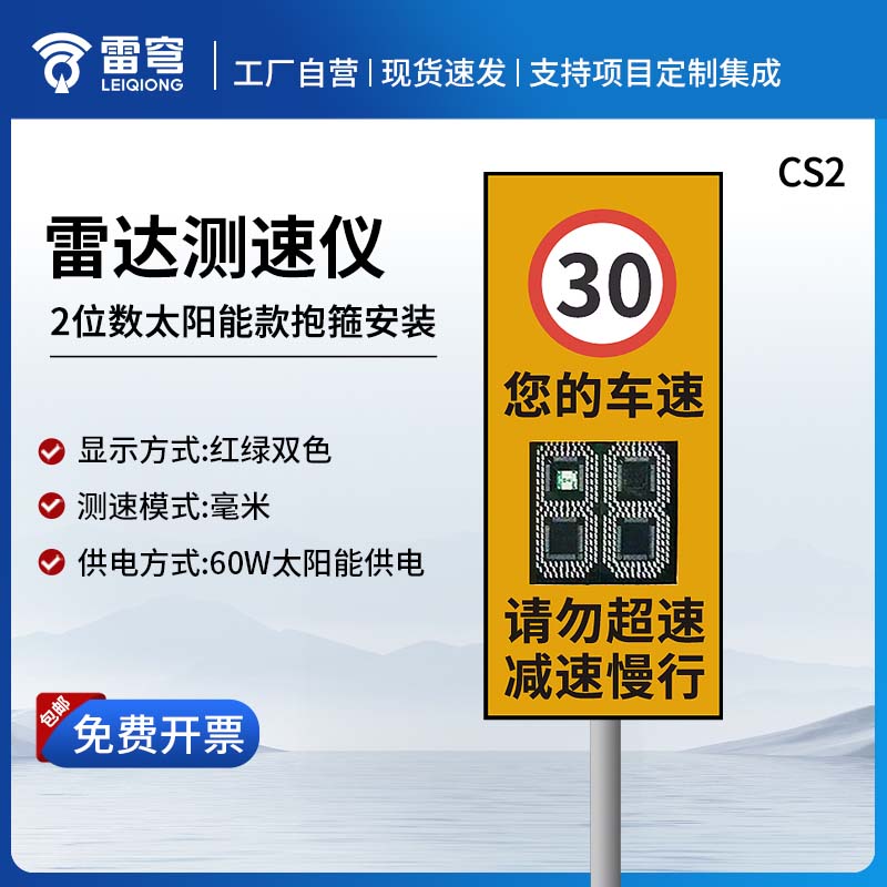 【产品简介】雷达测速屏产品介绍显示面积:400X590显示方式:红绿双色测速模式:毫米雷达精确反馈供电方式:60W太阳能供电规格:1200cm宽x600cm (二位数显示)工作模式:超速时红色···