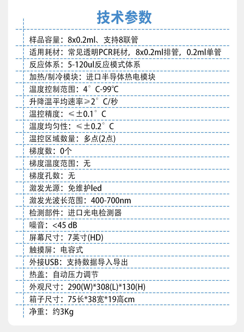 适用耗材:常见透明PCR耗材,8x0.2ml排管,0.2ml单管