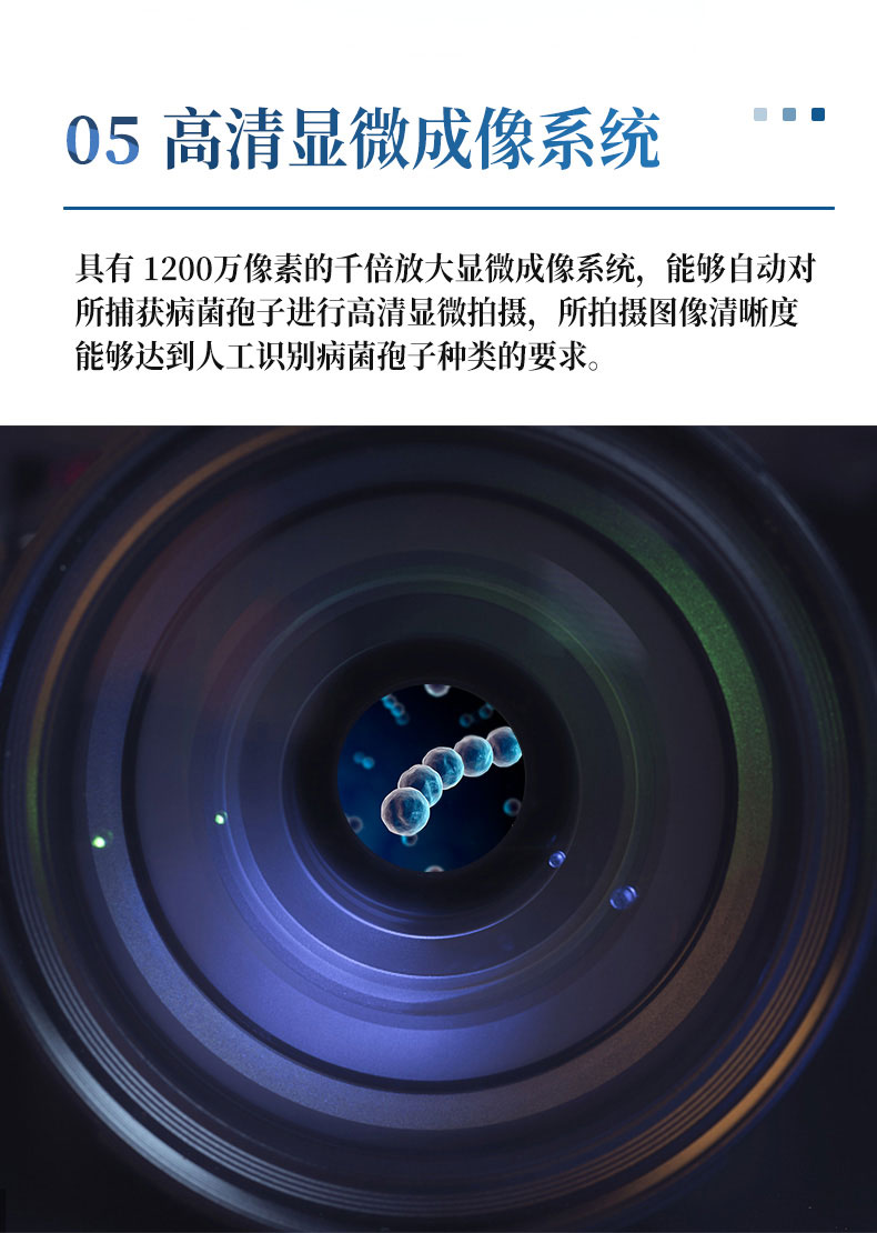 3、具有 1200万像素的千倍放大显微成像系统,能够自动对所捕获病菌孢子进行高清显微拍摄,所拍摄图像清晰度能够达到人工识别病菌孢子种类的要求。